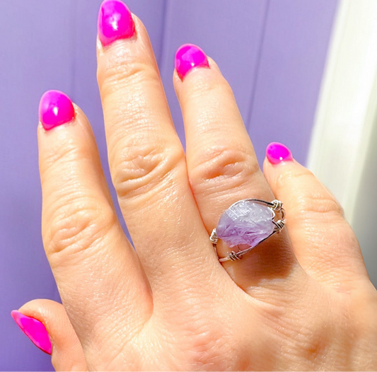 Amalia Silver Raw Amethyst Gemstone Ring