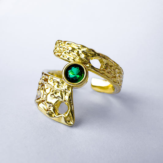 Gaia Gold Gemstone Ring | Emerald Green | Adjustable
