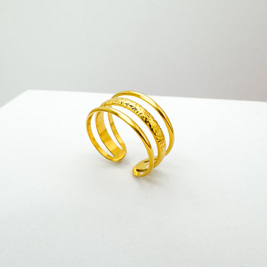 Eva Triple Band Gold Ring | Adjustable