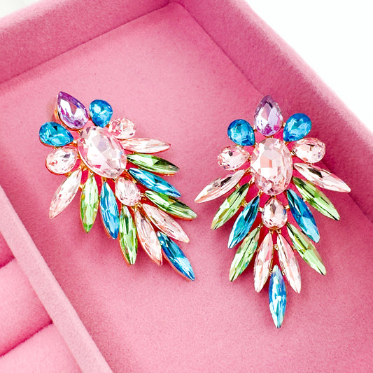 Jemima Pink Gemstone Star Charm Gold Earrings