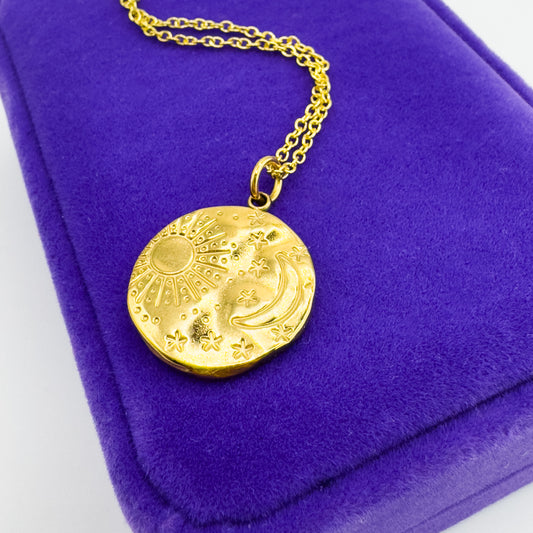 Luna Gold Sun & Moon Engraved Pendant Necklace