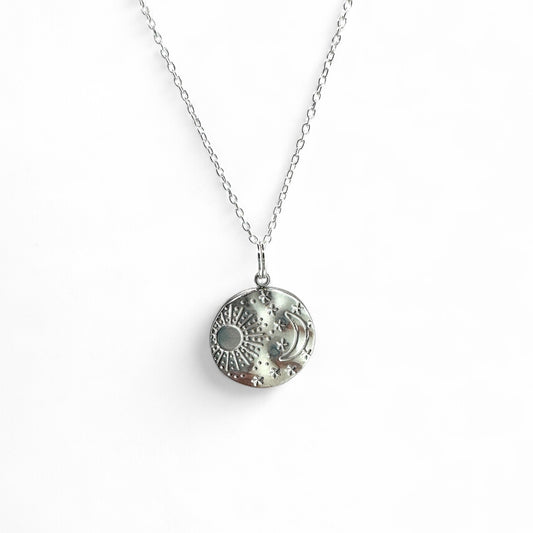 Luna Silver Sun & Moon Engraved Pendant Necklace