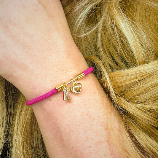 Keira Pink Initial Charm Cord Bracelet | Choose Your Initial