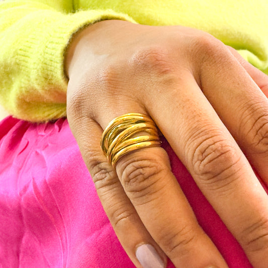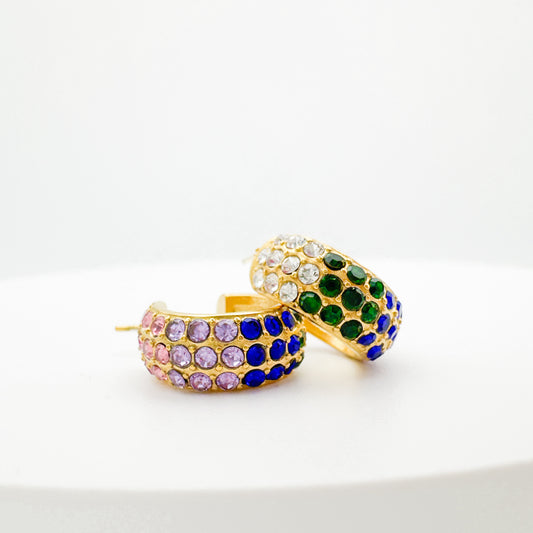 Teija Gold Rainbow Gemstone Chunky Medium Hoop Earrings