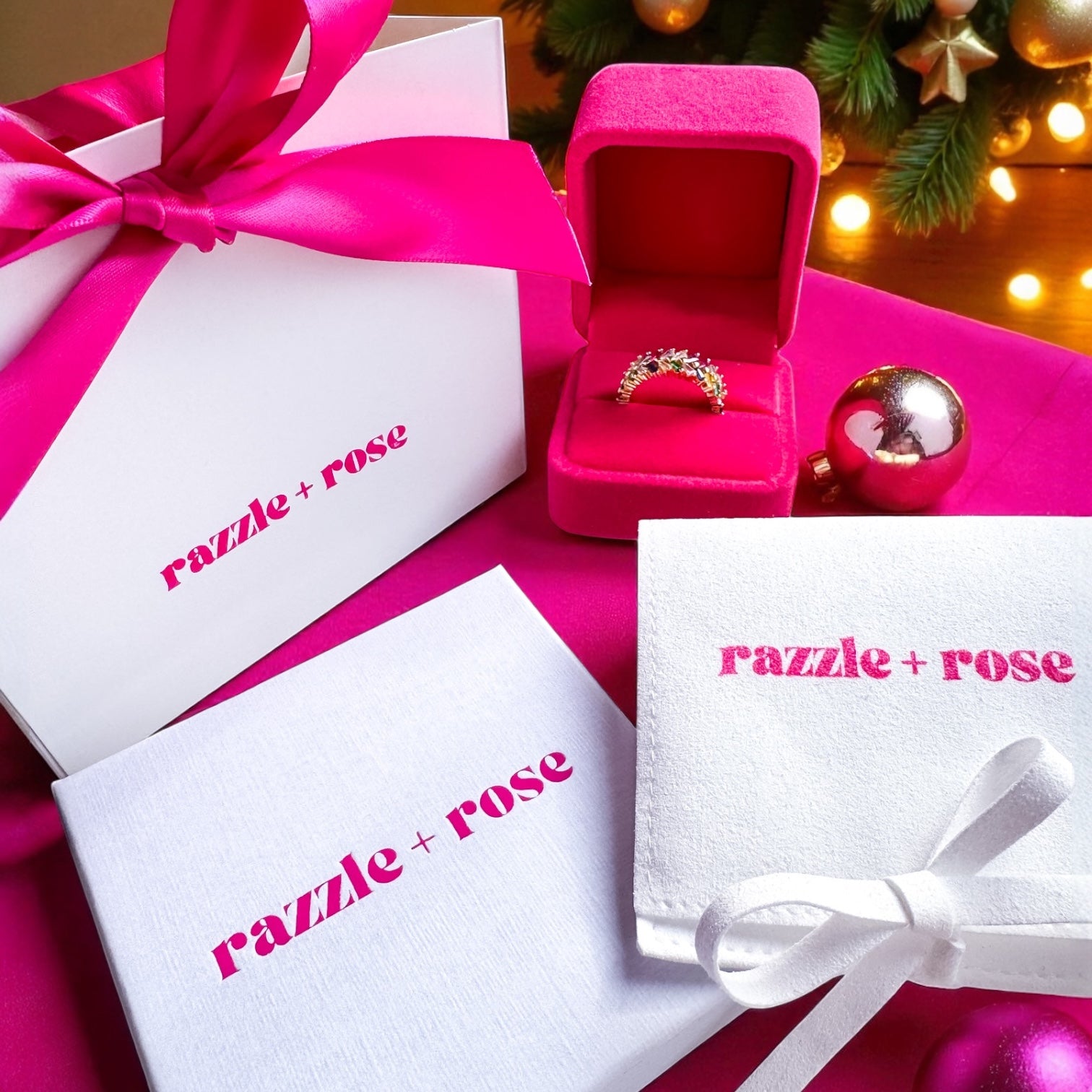 Every order comes with a Razzle + Rose velvet pouch, care guide and anti-tarnish tab - pop this in your closed jewellery box or pouch to prolong the life of your jewels ✨