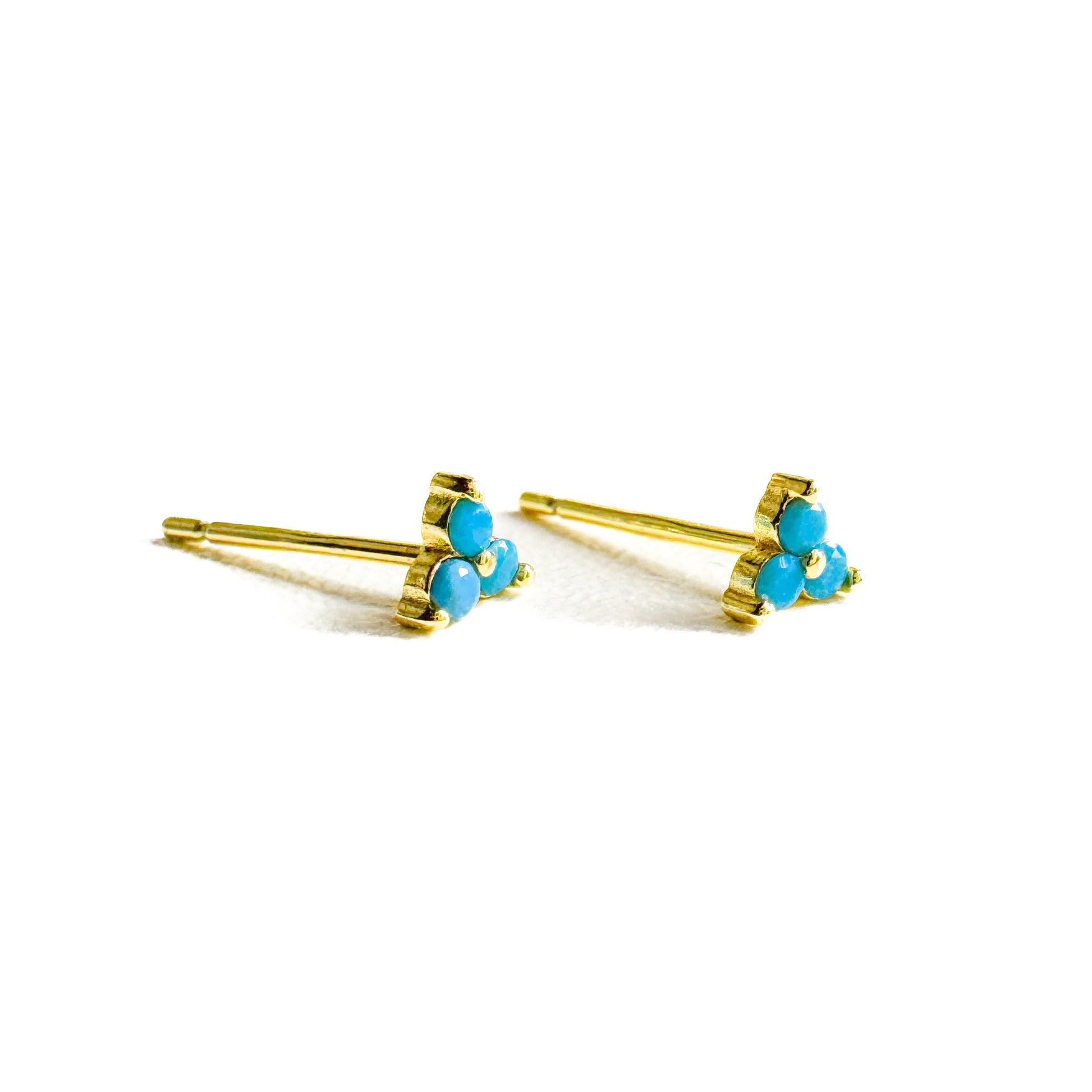 Camellia Triple Gemstone Gold Vermeil Stud Earrings | Turquoise