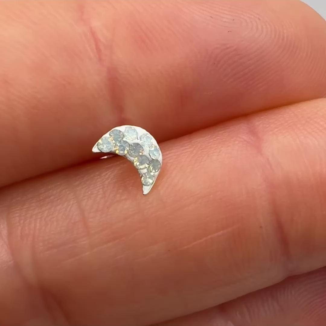 the cutest moon shaped stud earrings.. made from solid sterling silver and tiny genuine Opal gemstones that shimmer in the light with a gorgeous white - blue hue